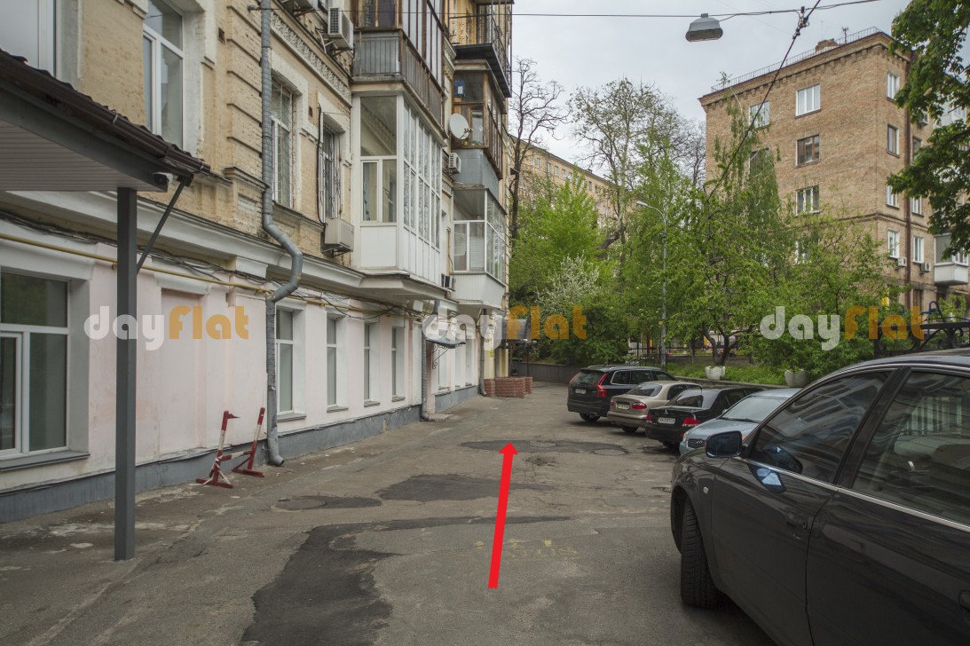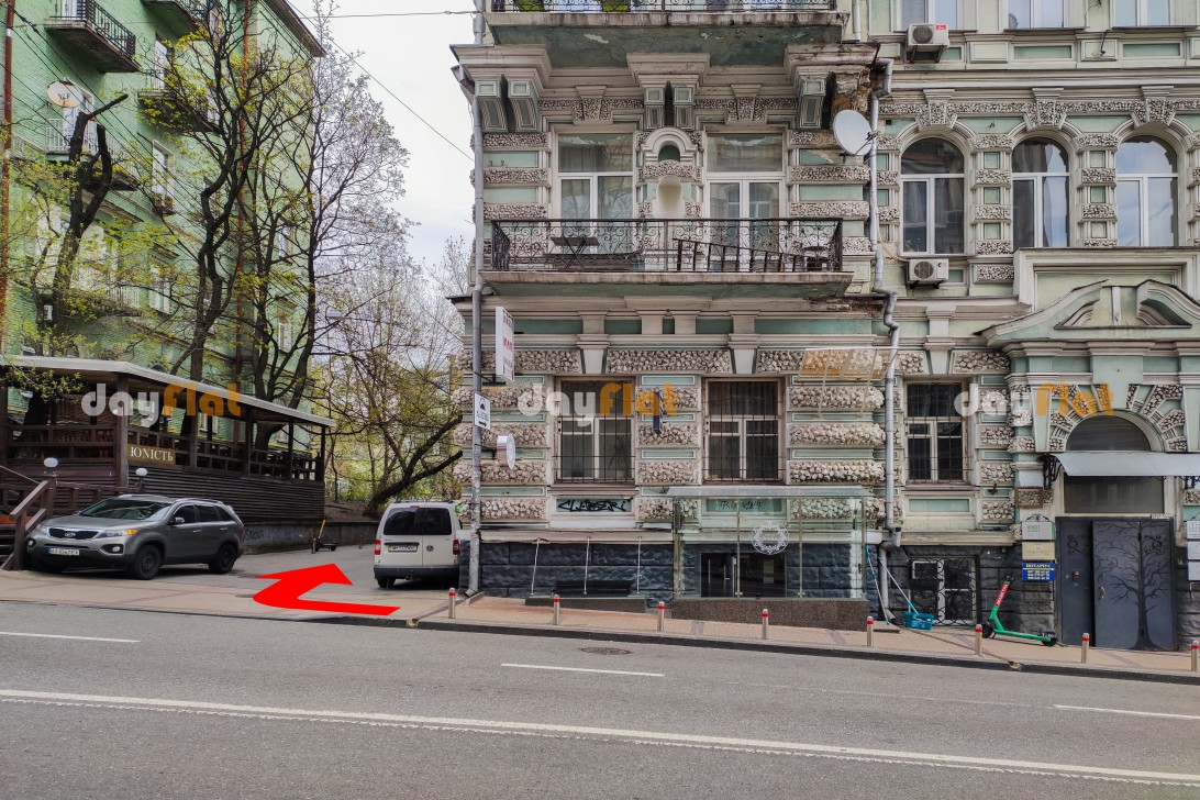 Квартира знаходиться на 5-му поверсі 6-ти поверхового будинку. Будинок в якому знаходиться квартира розташований в історичній частині Києва, поблизу від головних визначних пам'яток столиці України, в 5 хвилинах ходьби Софіївська площа, Майдан Незалежності, ТЦ "Глобус", поруч великий вибір кафе і барів. У 10 хвилинах ходьби головна вулиця Києва - Хрещатик, Бессарабська площа з безліччю магазинів і кафе, ТЦ "Мандарин Плаза", БЦ «Парус», а також ТРЦ «Арена», в якому розташовані: центр сучасного мистецтва «Пінчук Арт Центр», нічні клуби, магазини, ресторани, кафе, цілодобовий супермаркет.