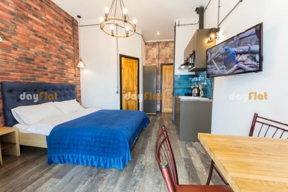 Однокімнатні апартаменти - студіо складаються з затишної спальні, кухні, санвузла і балкона. Вікна виходять в тихий двір, який огороджує від шуму центральних вулиць. У будинку є ліфт.