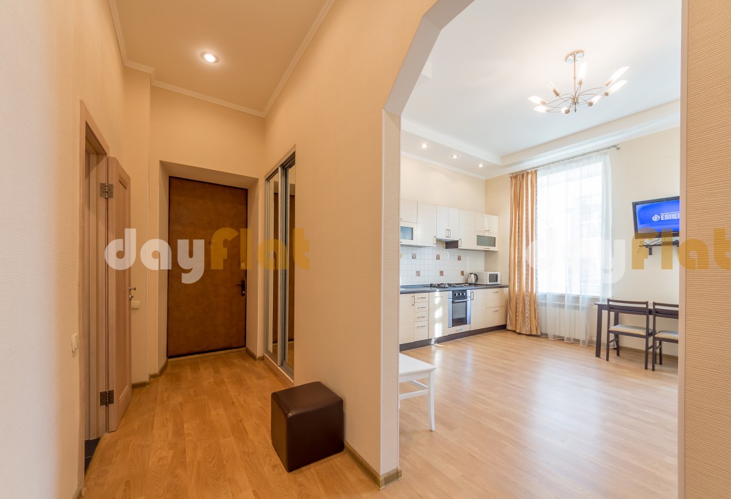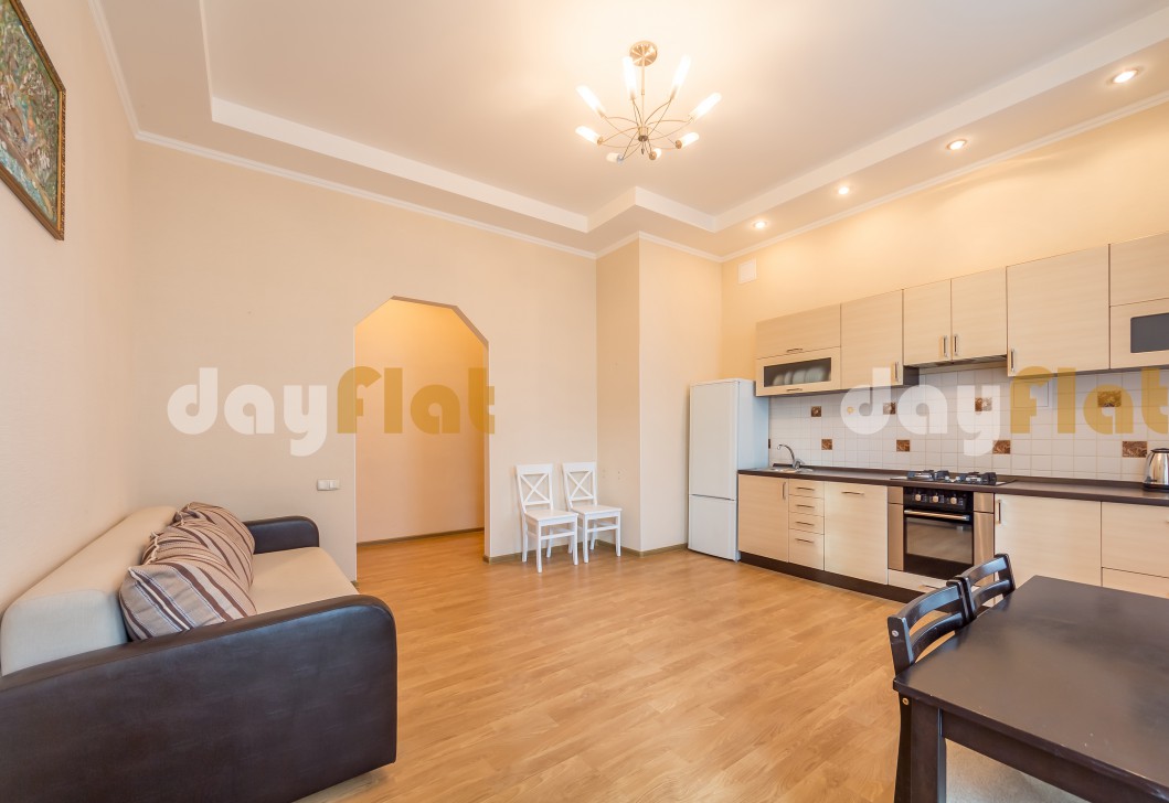 Двухкомнатные апартаменты - студио, состоящие из просторной гостиной с кухней, уютной спальни, совместного санузла и балкона. Окна выходят в тихий двор, ограждающий от шума центральных улиц. В доме нет лифта.