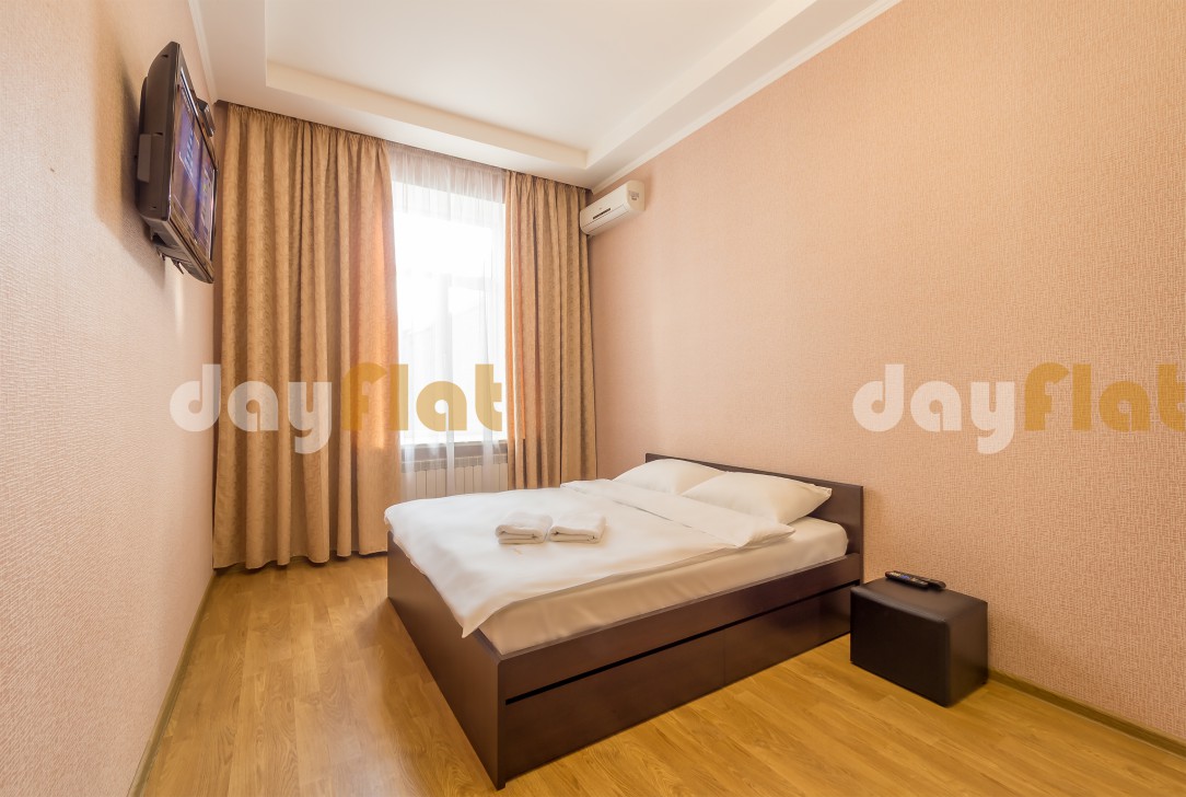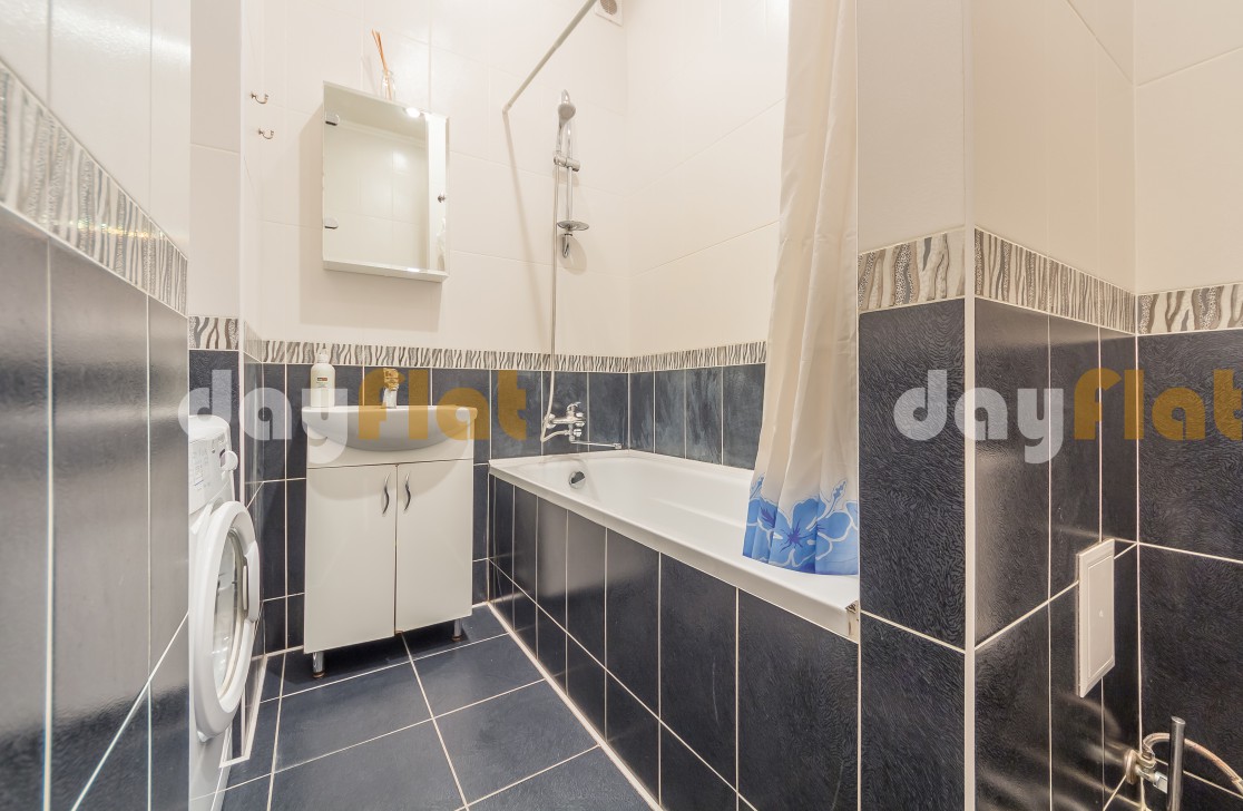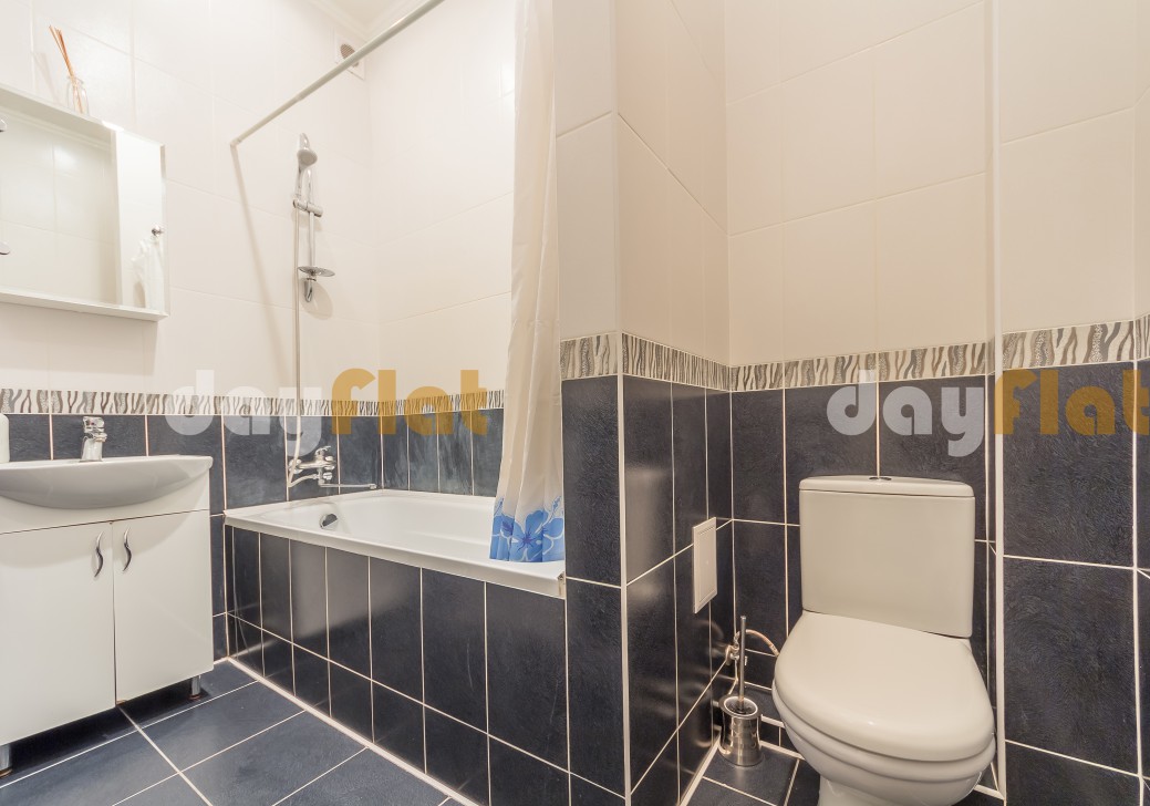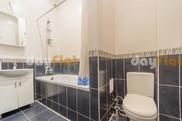 В квартире имеется все необходимое для комфортного проживания 2-х человек: двуспальная кровать, диван, шкаф, телевизор. Кухня: газовая плита, стол, стулья, холодильник, микроволновая печь, электрочайник. Санузел: ванна, стиральная машина, фен. Снабжение горячей водой централизованное (24 часа в сутки), на случай отключения централизованного водоснабжения в квартире предусмотрен автономный водонагреватель.