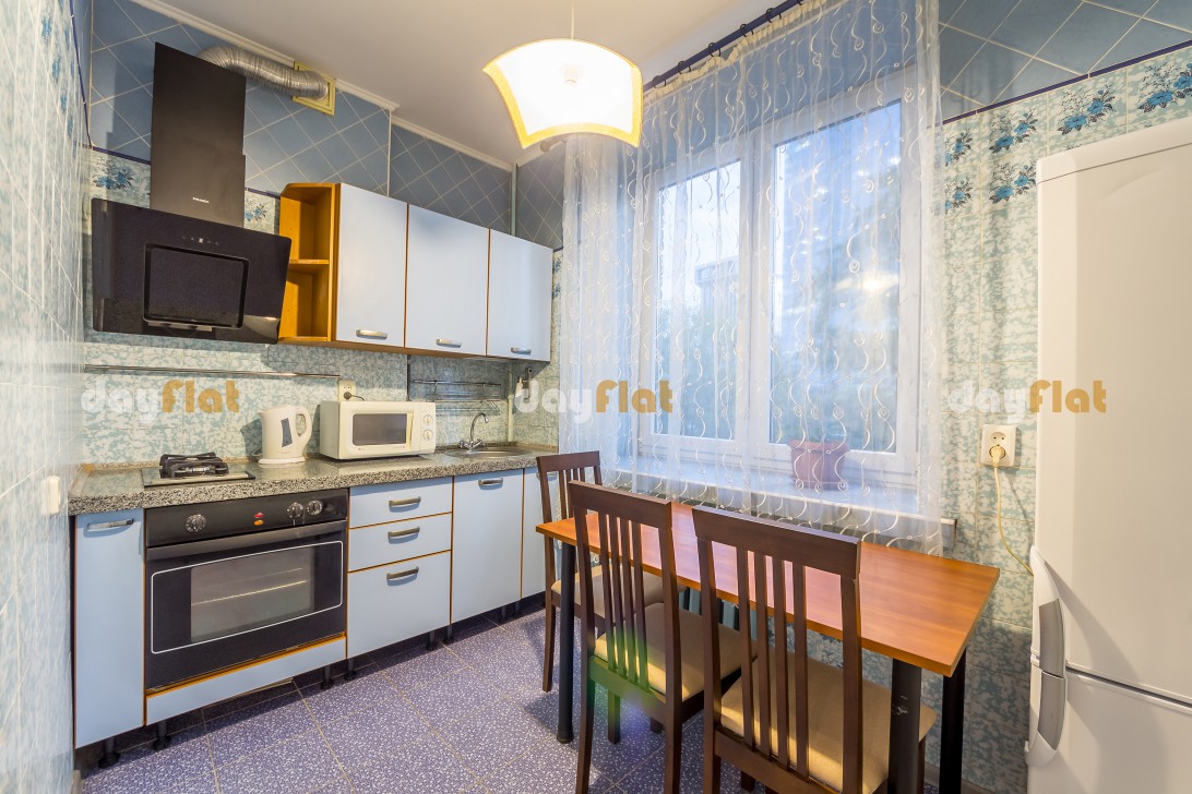 У квартирі є все необхідне для комфортного проживання 4-х осіб: двоспальне ліжко, двоспальний розкладний диван, шафа, телевізор. Кухня: газова плита, стіл, стільці, холодильник, мікрохвильова піч, електрочайник. Санвузол: душ, пральна машина, фен. У квартирі передбачений автономний водонагрівач.