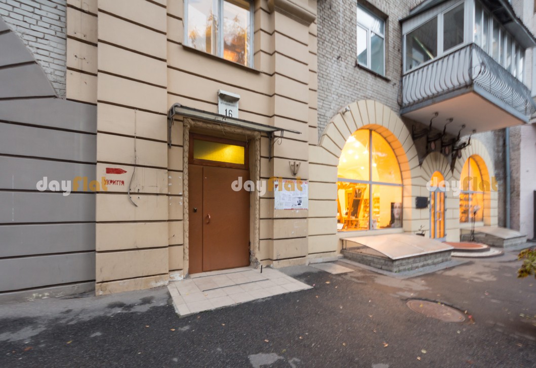 Квартира знаходиться на 2-му поверсі 9-ти поверхового будинку. Будинок в якому знаходиться квартира розташована в історичній частині Києва, поблизу головних визначних пам'яток столиці України, в 5 хвилинах пішки до головної вулиці Києва - Хрещатик, Бессарабської площі з безліччю магазинів і кафе, ТЦ "Мандарин Плаза", БЦ «Парус», а також ТРЦ «Арена», в якому розташовані: центр сучасного мистецтва «Пінчук Арт центр», нічні клуби, магазини, ресторани, кафе, цілодобовий супермаркет. У 15 хвилинах від будинку розташований НСК «Олімпійський».