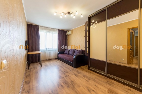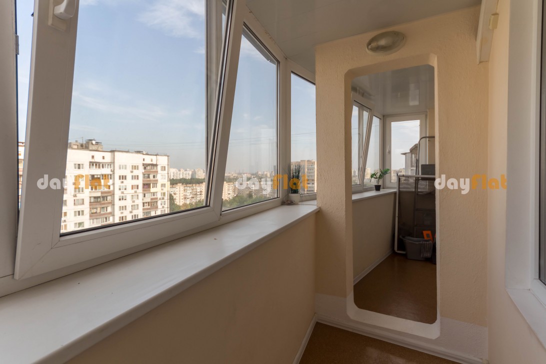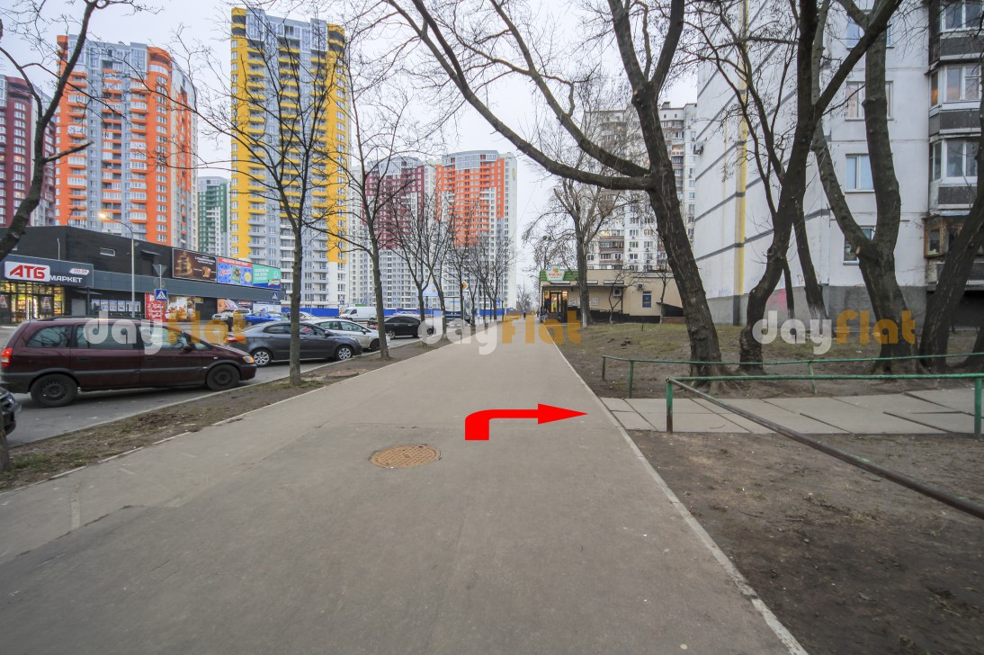 Квартира знаходиться на 16-му поверсі 16-ти поверхового будинку. Будинок в якому знаходиться квартира розташований в 10 хвилин ходьби від станції метро «Лівобережна», Міжнародний виставковий центр (МВЦ). Поруч ТРЦ «Комод» з великою кількістю магазинів і кафе, супермаркет «Фуршет», кінотеатр «Мультиплекс», театр «Драми і комедії на Лівому березі».
