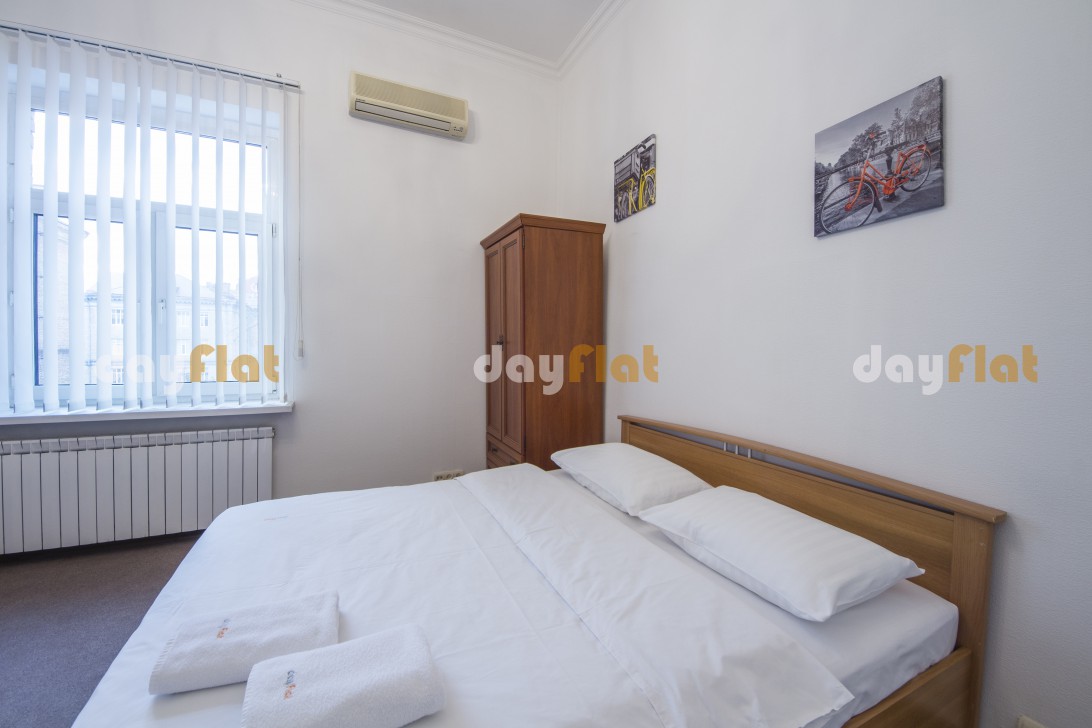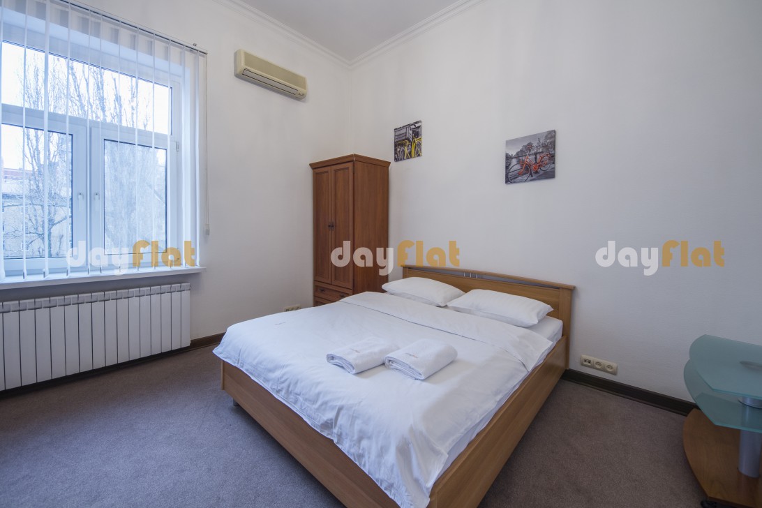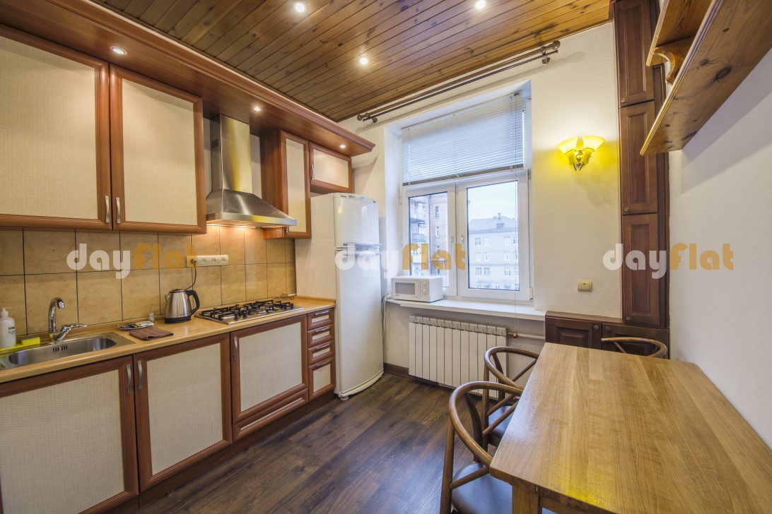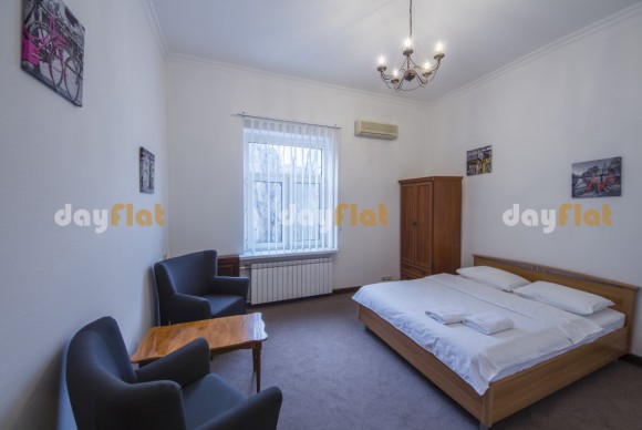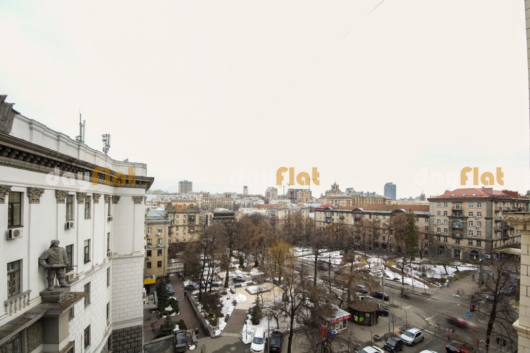 Квартира находится на 6-м этаже 6-ти этажного дома. Дом в котором находится квартира расположен в исторической части Киева, вблизи от главных достопримечательностей столицы Украины, в 5 минутах пешком до главной улицы Киева - Крещатик, Площади Независимости, Бессарабской площади с множеством магазинов и кафе, ТЦ "Мандарин Плаза", БЦ «Парус» , а также ТРЦ «Арена», в котором расположены: центр современного искусства «Пинчук Арт центр», ночные клубы, магазины, рестораны, кафе, круглосуточный супермаркет. В 15 минутах от дома расположен НСК «Олимпийский».