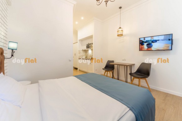 Однокомнатные апартаменты состоящие из уютной спальни, кухни и санузла. Окна выходят на улицу.