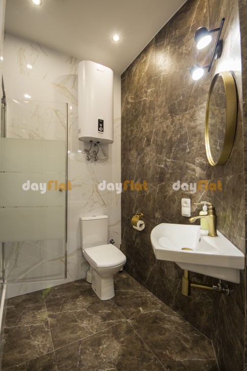 Санвузол: душова кабіна, фен. У квартирі передбачений автономний водонагрівач.