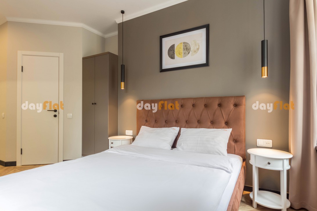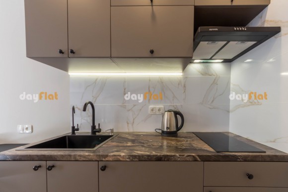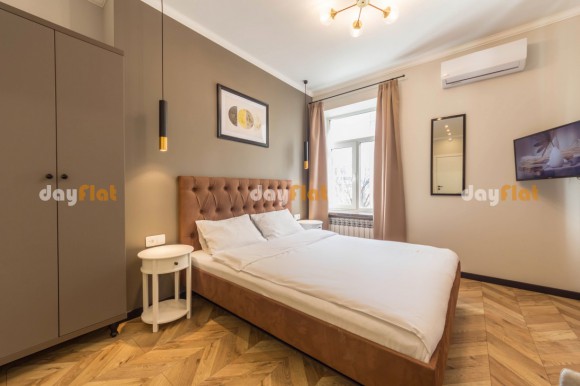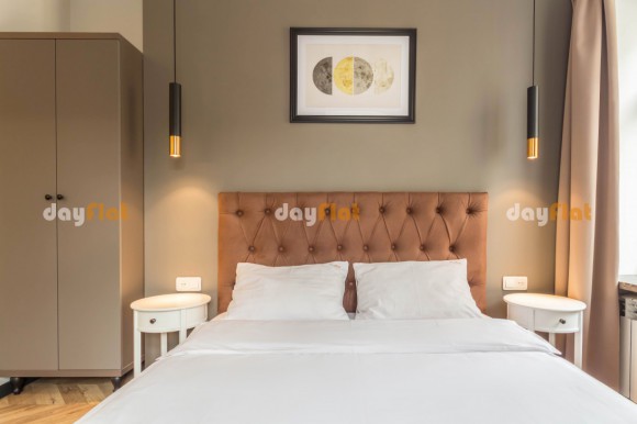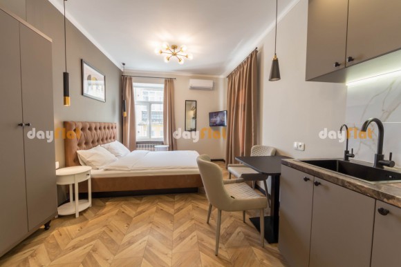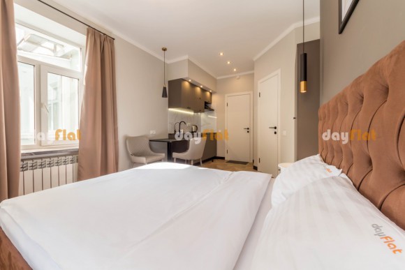 Дизайнерські апартаменти - студіо, що складаються з затишної спальні, кухні та санвузла. Вікна виходять на вулицю. У будинку немає ліфта.