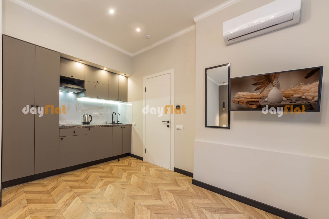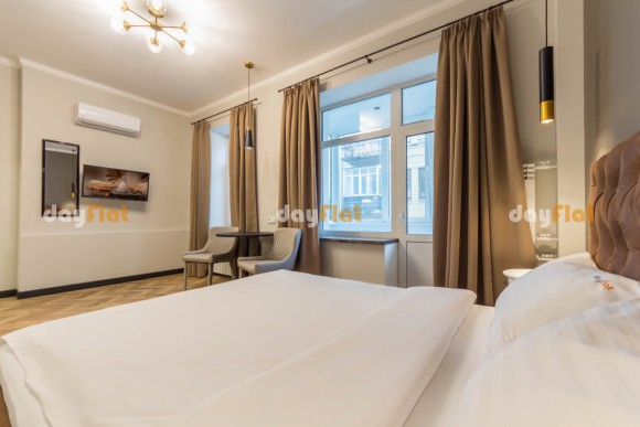 Дизайнерські апартаменти - студіо, що складаються з затишної спальні, кухні, санвузла і балкона. Вікна виходять на вулицю. У будинку немає ліфта.